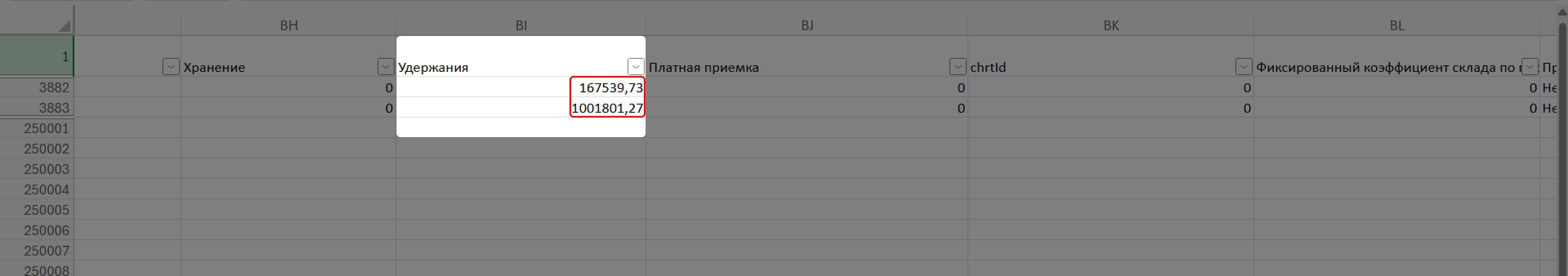 • Пролистайте вправо до столбца «Удержания» и возьмите из него суммы.