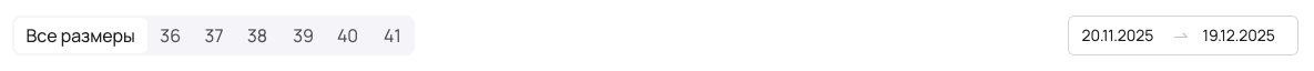Верхняя панель позволяет выбрать период анализа и размер товара.