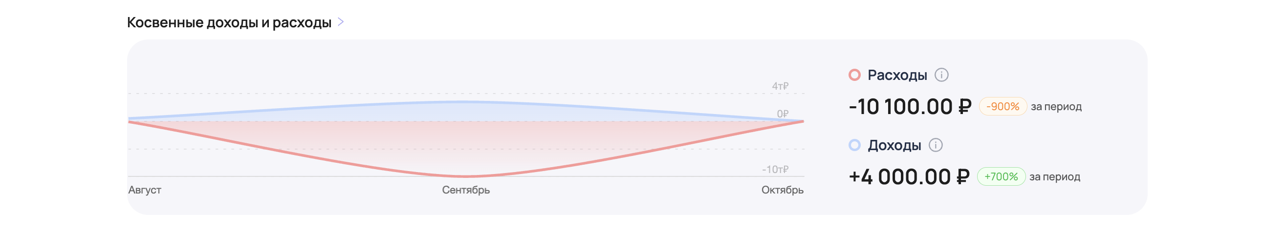 Изменение за период — зелёные/оранжевые бейджи рядом с метриками показывают, как изменился показатель за выбранный период по сравнению с аналогичным периодом в прошлом.