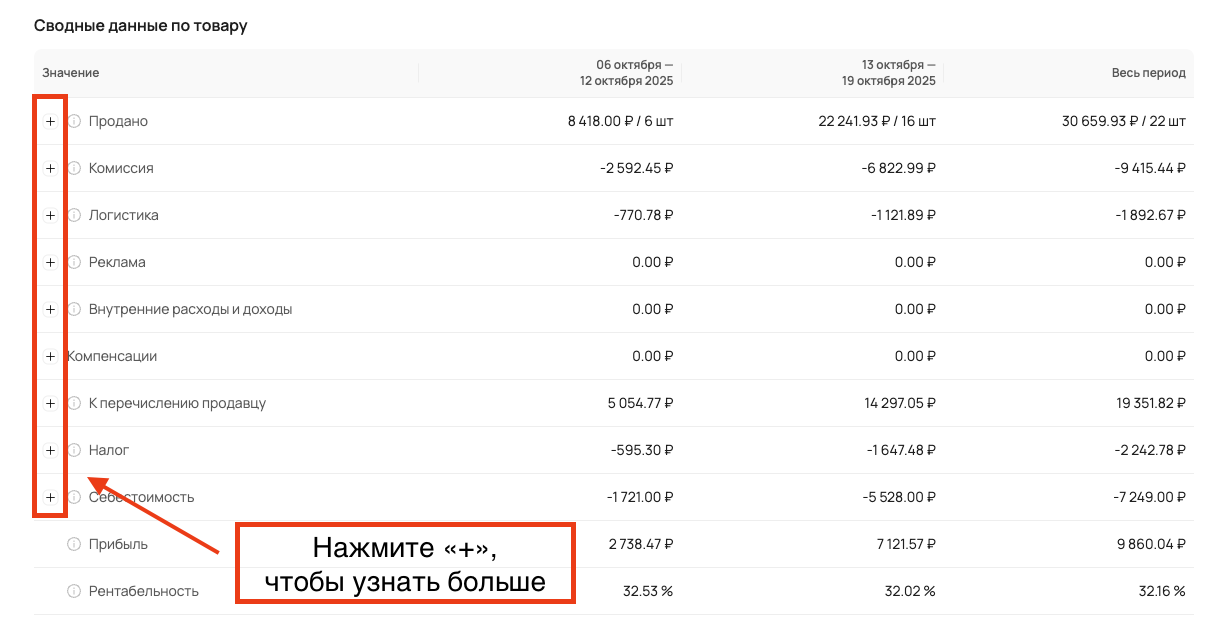 | *️⃣ Если для вашей оценки критична стоимость рекламных кампаний, смотрите её в связке с «Аналитикой карточки товара» (там реклама привязана к заказам). «Аналитика продаж» остаётся чистой «финмоделью факта». |