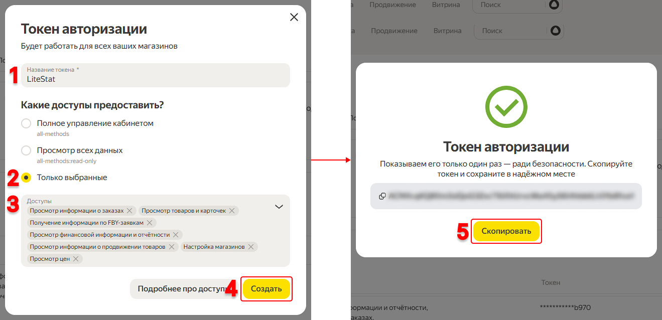 Чтобы продажи, комиссии и другие данные автоматически загружались в LiteStat, нужно создать API-ключ в кабинете Яндекс Маркета и добавить его в сервис.
